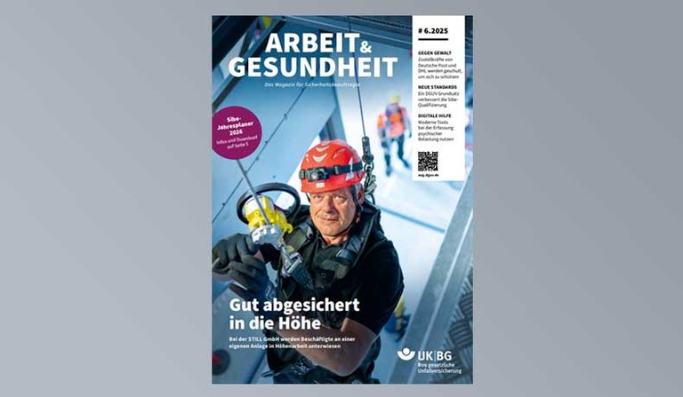 Sicher in der Höhe arbeiten ist das Titelthema der neuen Ausgabe des Magazins für Sicherheitsbeauftragte. Außerdem stellt ein Artikel das neue Rahmenkonzept für die Aus- und Fortbildung von Sicherheitsbeauftragten vor.